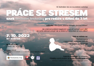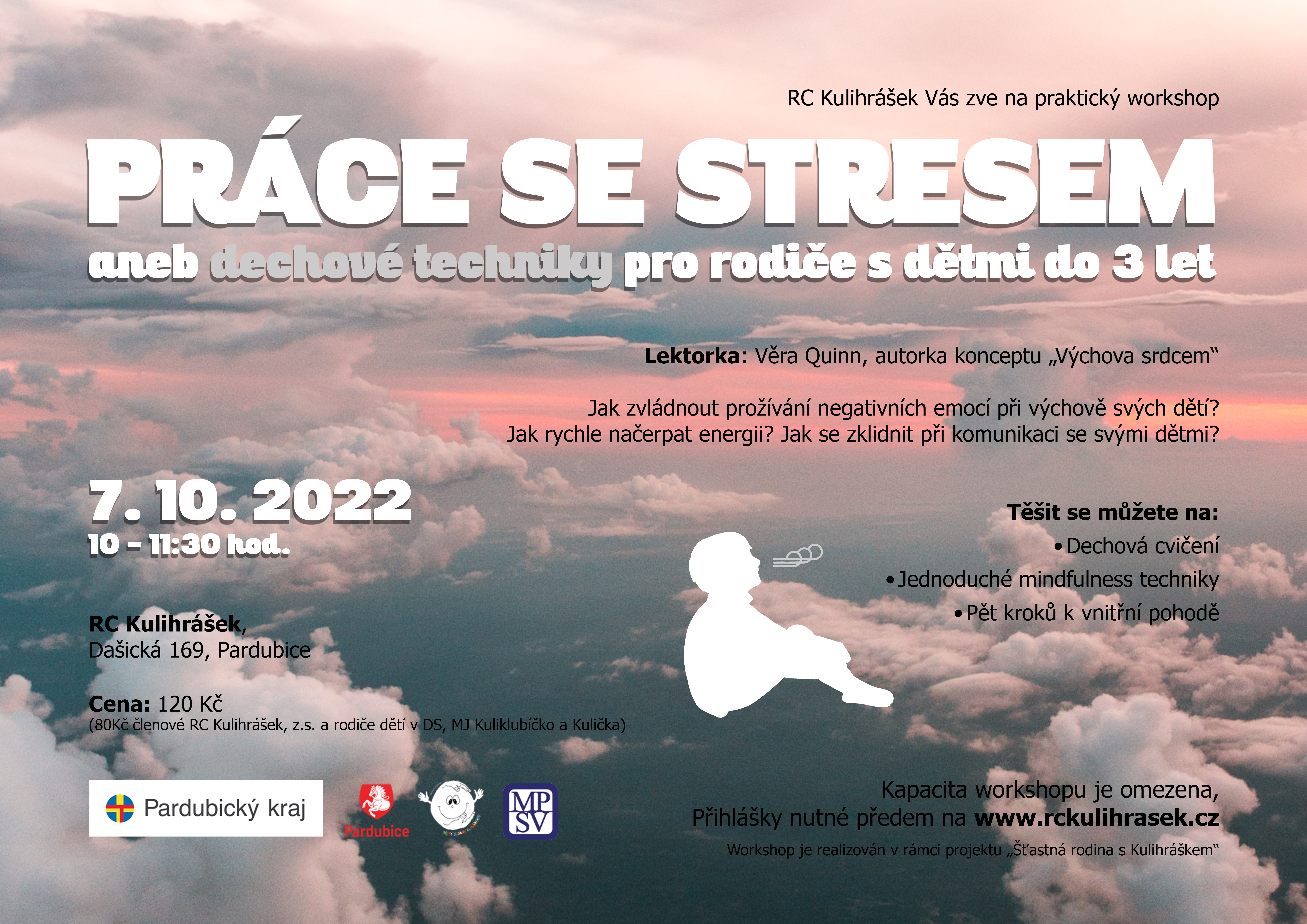 PRÁCE SE STRESEM ANEB DECHOVÉ TECHNIKY PRO RODIČE S DĚTMI Posted on7.10.20227.9.2022AuthorKatka Nyčová nahrávám mapu.... RC KulihrášekDašická 169 - PardubiceUdálosti 50.0315784 15.804607799999985 Datum / čas 07.10.202210:00 - 11:30 Místo konání RC Kulihrášek Kategorie Akce Semináře Více info v sekci Semináře.